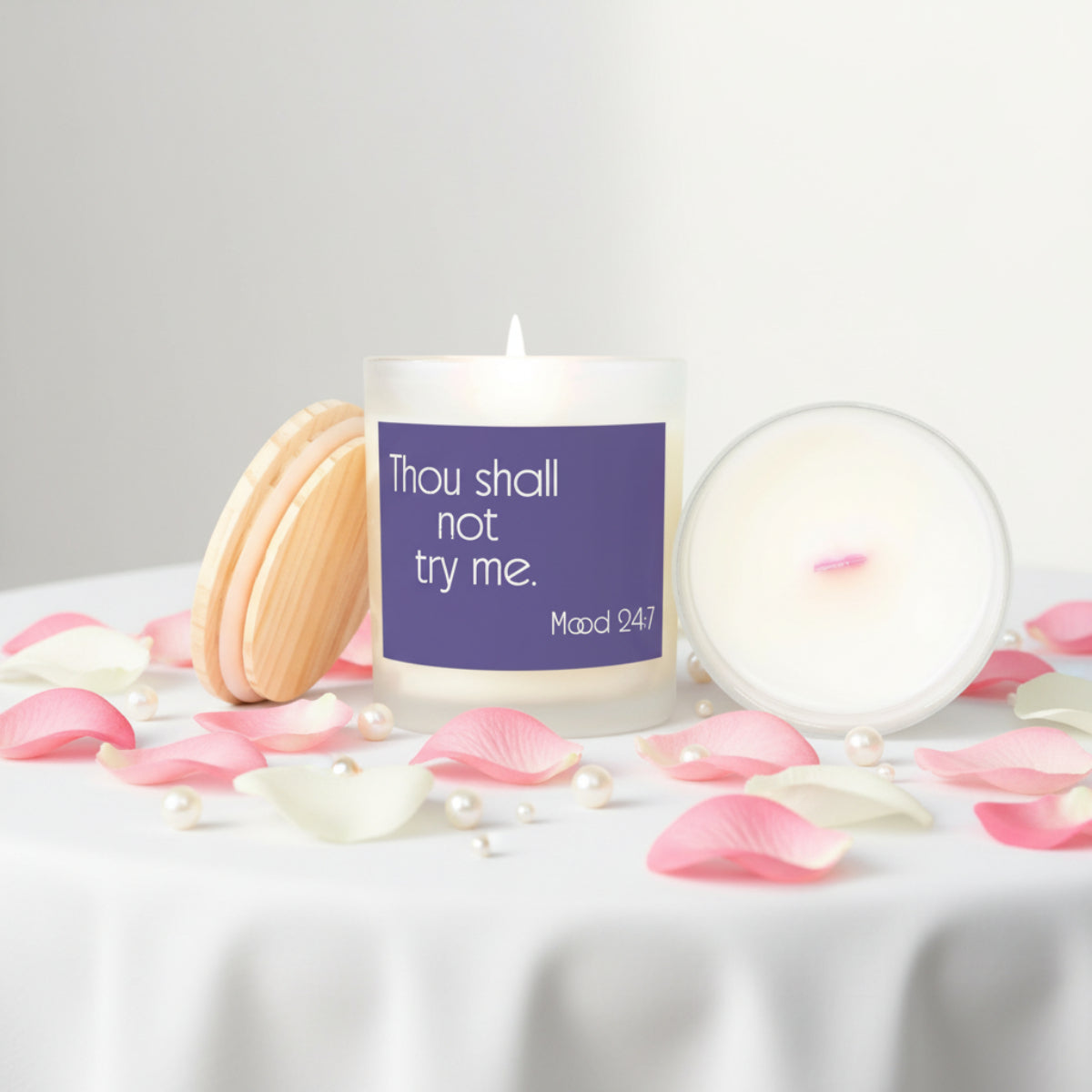 Thou Shall Not Try Me Candle Frosted (Pink Wick) Glass